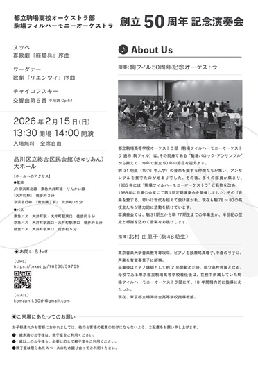 日時:2026年2月15日(日)14時開演 入場無料 全席自由
